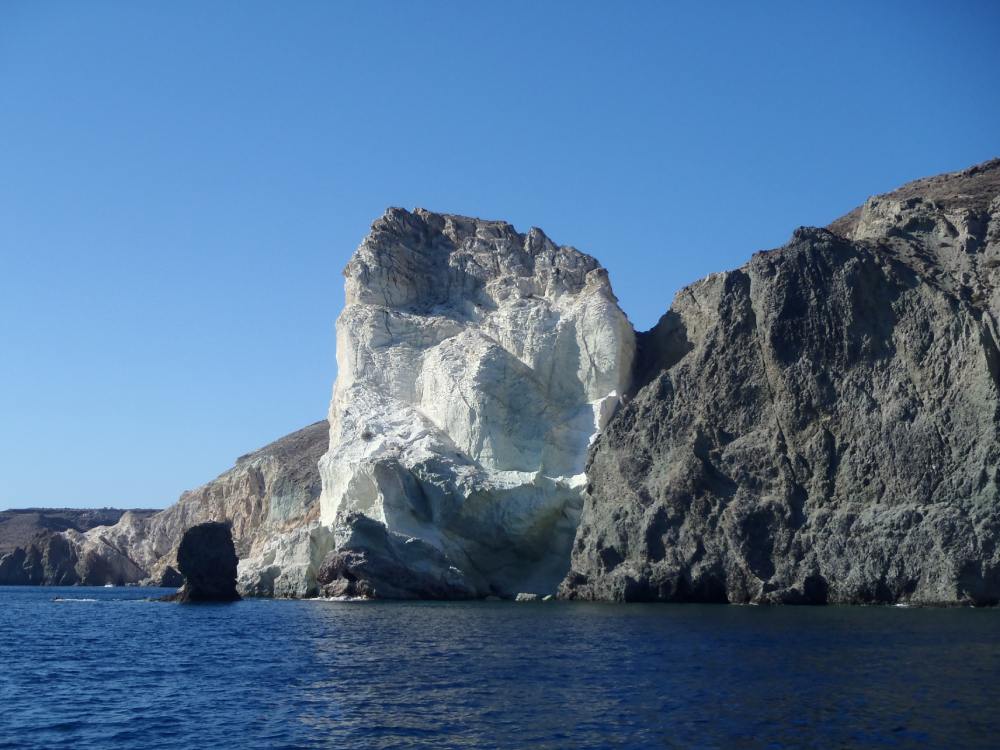 As we continue, take in the views of White Beach, the famous Indian Rock, and the historic Akrotiri Lighthouse—each a photo-worthy gem along the caldera. Next, we reach the heart of Santorini’s volcanic landscape: the healing sulfur springs near Nea and Palia Kameni. Here, we pause to swim in the mineral-rich waters and explore the unique volcanic beaches, famous for their surreal black, red, and white hues.