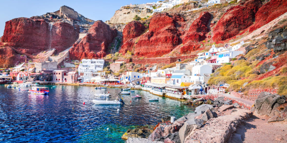 Cruise along the dramatic coastline, passing by Red Beach—famous for its fiery cliffs and crystal-clear waters. Stop here for a quick swim or to take photos of the stunning landscape.